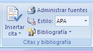 En esta funcion encontramos todo lo relacionado con da formato a la cita en funcion del estilo relacionado, administrar fuentes, permite elegir el estilo de cita que utilizara en el documento, agregar una bibliografia en que se enumeren todas las fuentes citadas en el documento.